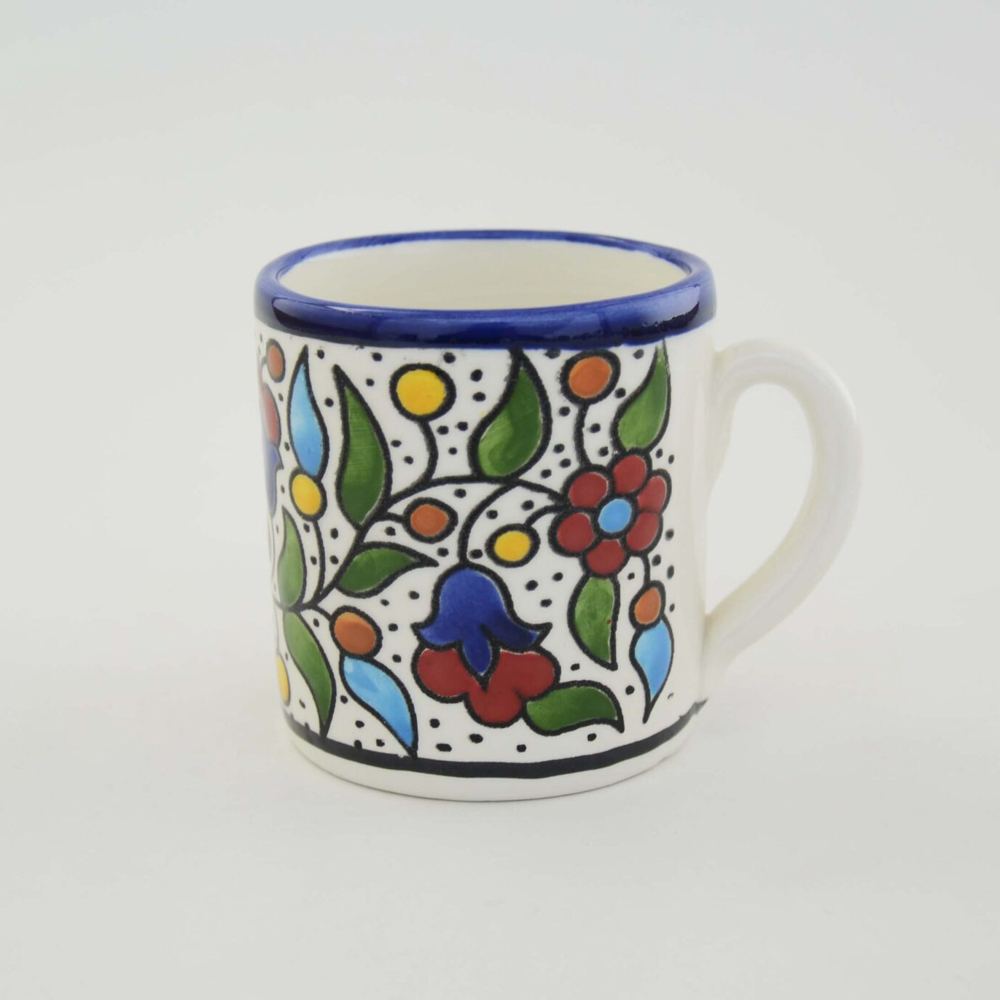 Espressokopp med tradisjonelt palestinsk mønster, håndlaget i Al Khalil av Hebron Glass.